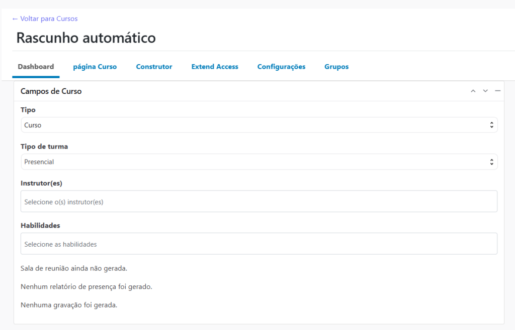 - Instrutor: Selecione o instrutor do curso, que acompanhará o desenvolvimento do alunos.