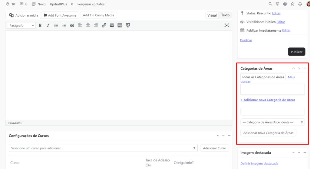 ✅ Imagem Destacada – Associar uma imagem para identificação.